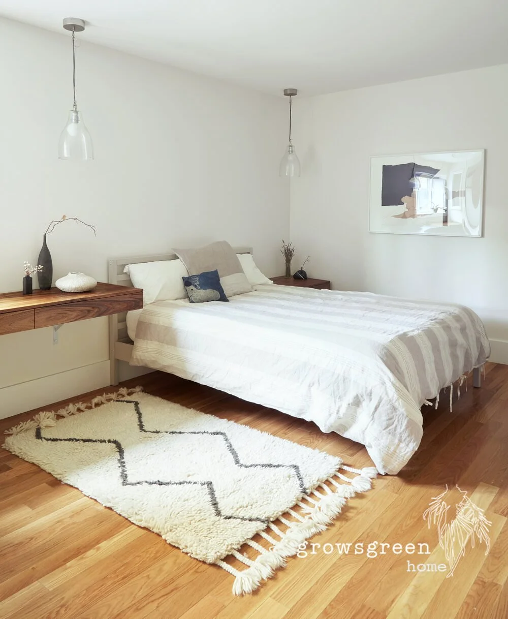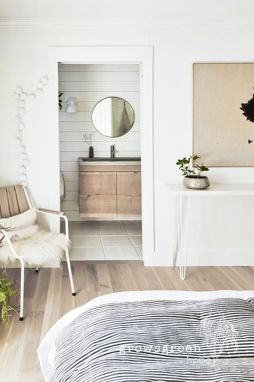 By changing out the old, scratched bamboo flooring with sustainable white oak, and painting the walls of the home matte white, we were able to capture the natural light of the space and set a backdrop for the quiet layering of textures and interests. Yes, we do that a lot. Love, love, love texture and quiet spaces.